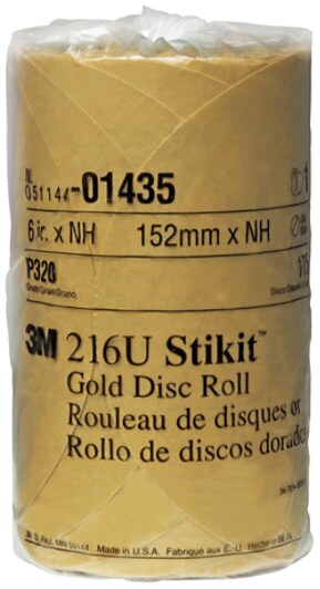 The 3M Stikit Gold Disc Roll includes 175 discs per roll, each measuring 6 inches in diameter with a P320 grit. Designed for automotive applications, these precision coated abrasives provide high performance and durability, making them a standard choice for professional shops.